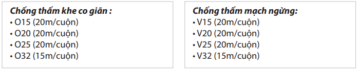 • Sản phẩm có nhiều hình dạng, kích thước khác nhau cho phép thi công chống thấm ở bất kỳ kiểu thiết kế nào.
