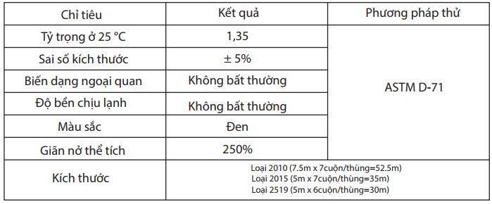 • Tính chất trương nở của sản phẩm không bị ảnh hưởng bởi chu kỳ ướt/khô.